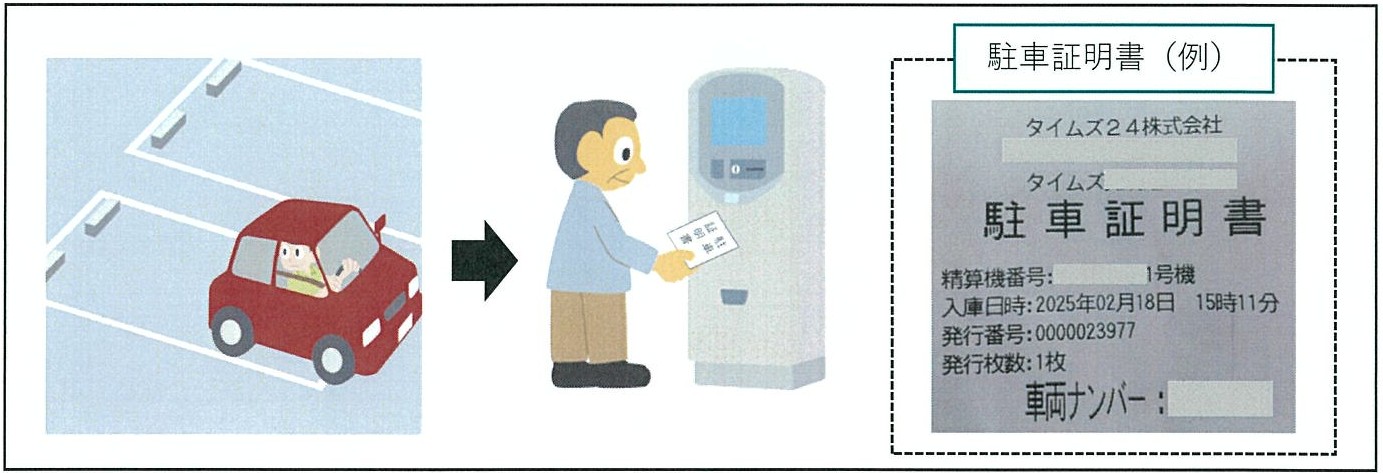 - 〇クリニック受付に「駐車証明書」をご提示ください。最大2時間無料の「駐車サービス券」をお渡しいたします。